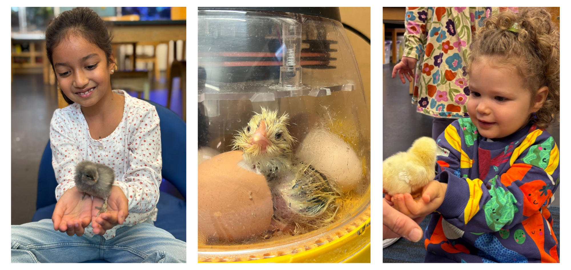 In September 2025, Caedmon welcomed eggs to our our science classroom. After 21 days, the first chick hatched, and soon, a total of 10 fluffy new friends joined the Caedmon family.